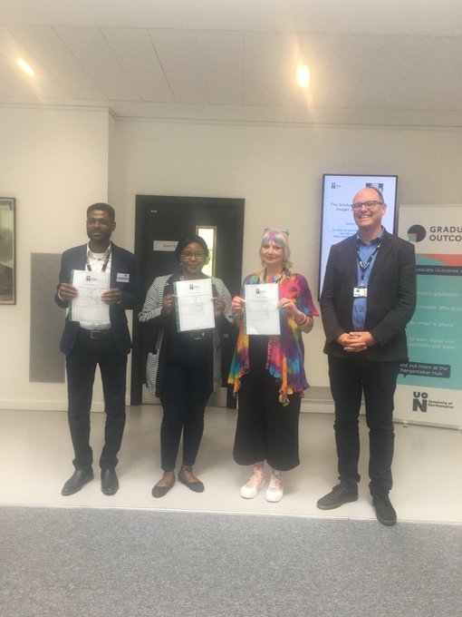 The winners were announced by Professor Matthew McCormack, Head of Graduate School. First prize, a £100 Amazon voucher, was won by researcher Hadiza Azi from Health and Biological Sciences. Hadiza’s poster was entitled “Utilisation of Maternal Health Care Service in Bauchi State, Nigeria: Exploring the Limiting Factors”. Hadiza said of the competition “The event was great, and it provided us the opportunity to meet face-face after such a long time.” Two second prizes of £75 in vouchers were won by Allyson Green from Humanities and Patrick Yeboah from Accounting and Finance. Congratulations to all the winners.