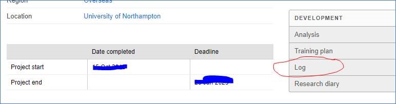 - My Log: You can download a record of all the Graduate School workshops you’ve been on and add workshops and training you have taken part in elsewhere.