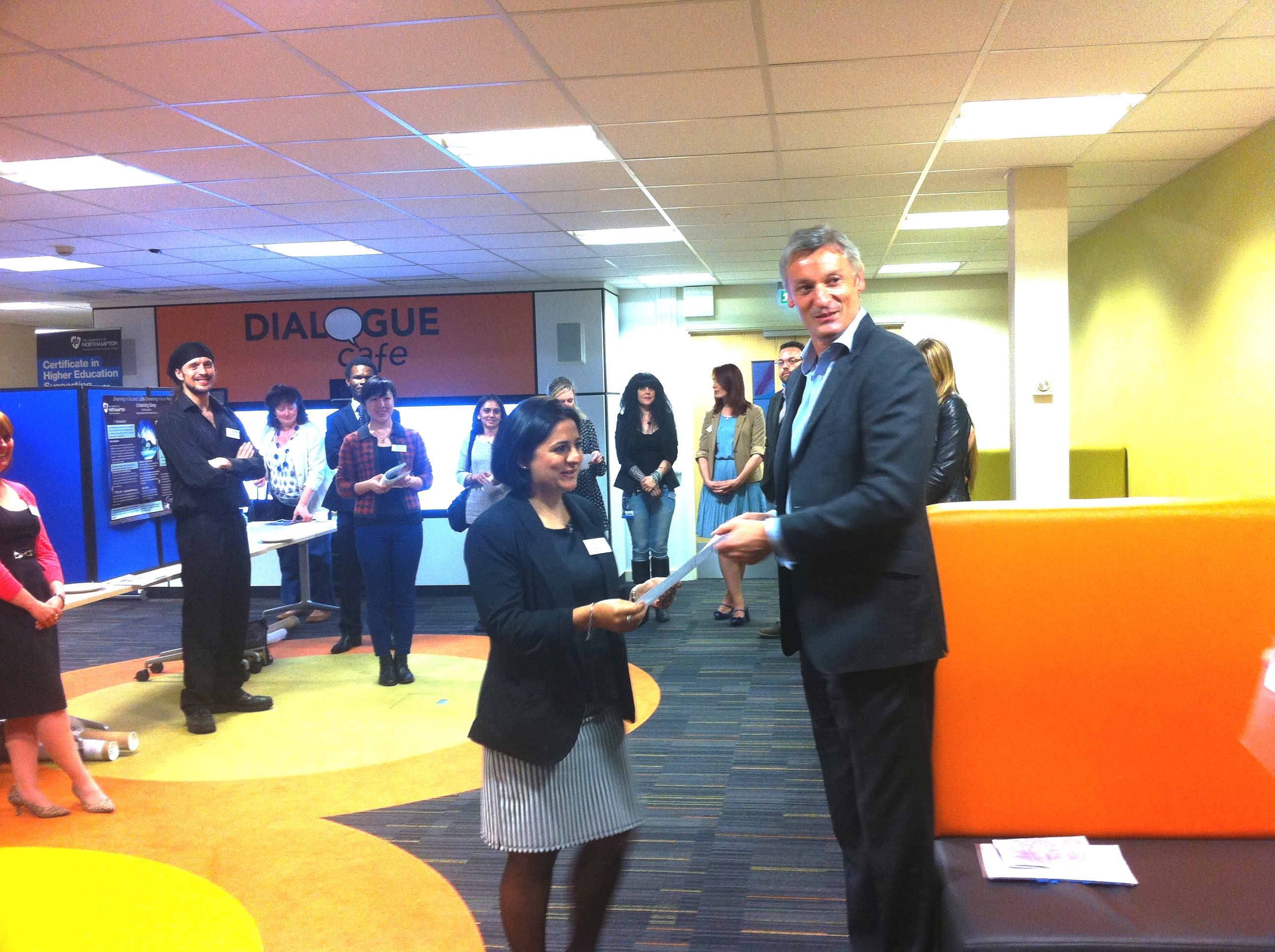 Saneeya Qureshi’s poster, entitled Like a cog in a wheel impressed the judges at our recent Poster competition, scoring 117 points out of a possible 126. The first prize of £100 was presented by the Vice Chancellor Professor Nick Petford.