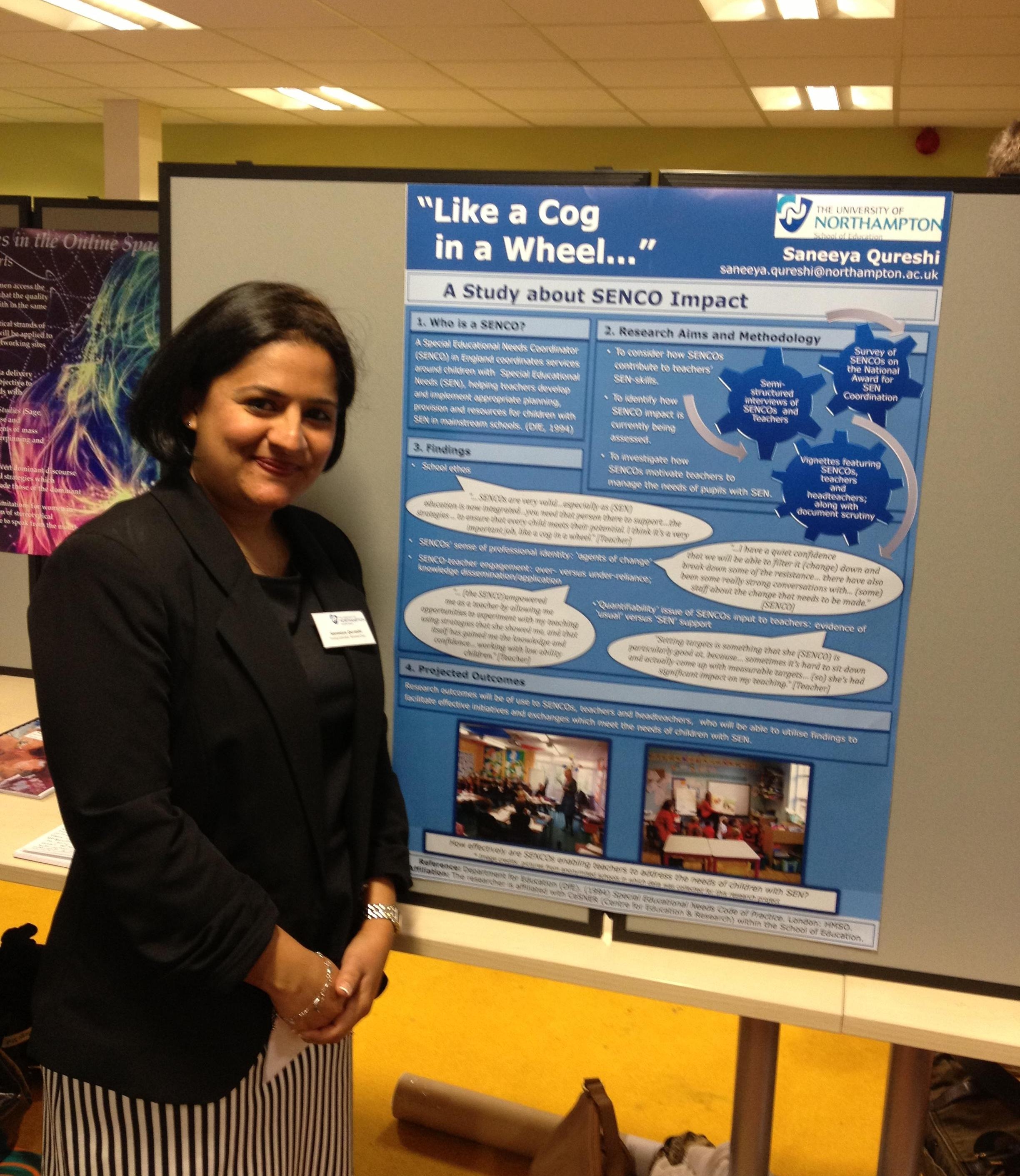 Saneeya’s research investigates the support provided to teachers with regard to their teaching practices for students who have Special Educational Needs (SEN) in mainstream English primary schools. This support is coordinated by Special Educational Needs Coordinators (SENCOs). The focus of the study is the SENCO-teacher dynamic, and the development and implementation of appropriate provisions for children with SEN. Data gathered through questionnaires and interviews is examined using thematic analysis.